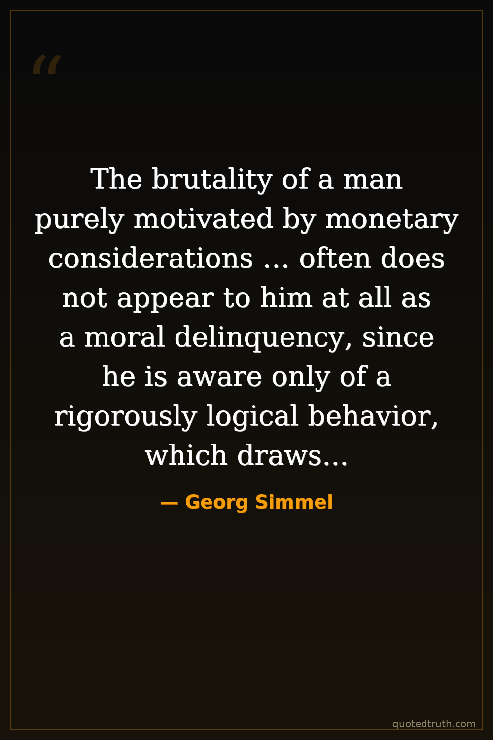 The brutality of a man purely motivated by monetary considerations … often does not appear to him at all as a moral delinquency, since he is aware only of a rigorously logical behavior, which draws the objective consequences of the given facts.