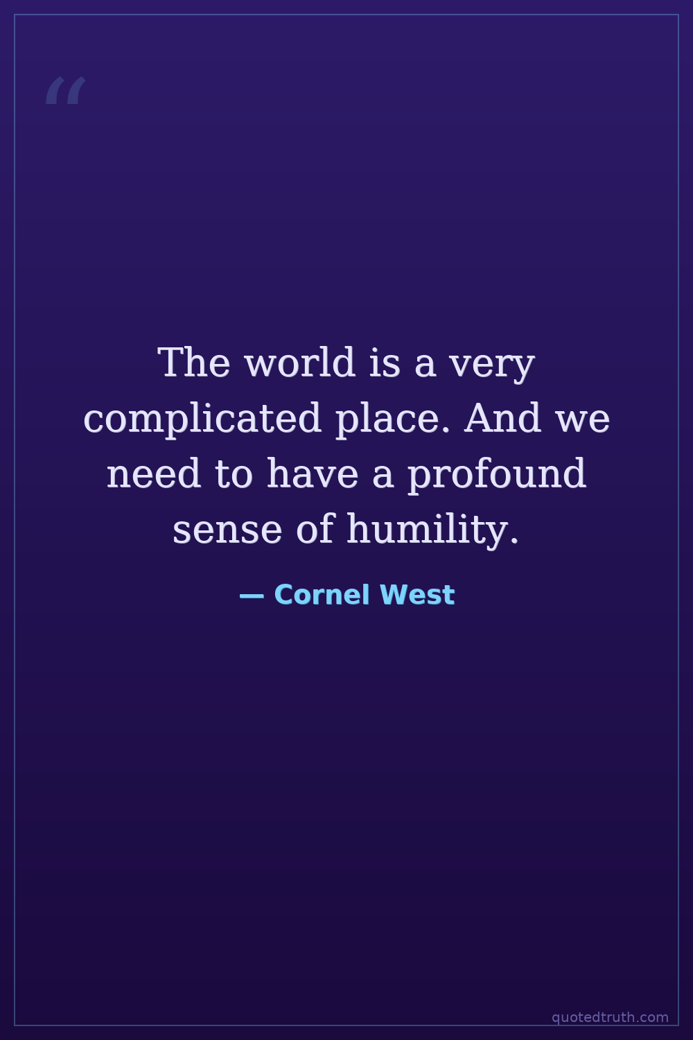 The world is a very complicated place. And we need to have a profound sense of humility.