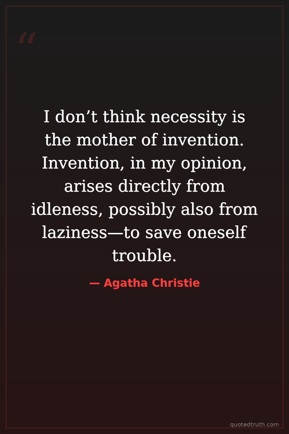 I don’t think necessity is the mother of invention. Invention, in my opinion, arises directly from idleness, possibly also from laziness—to save oneself trouble.