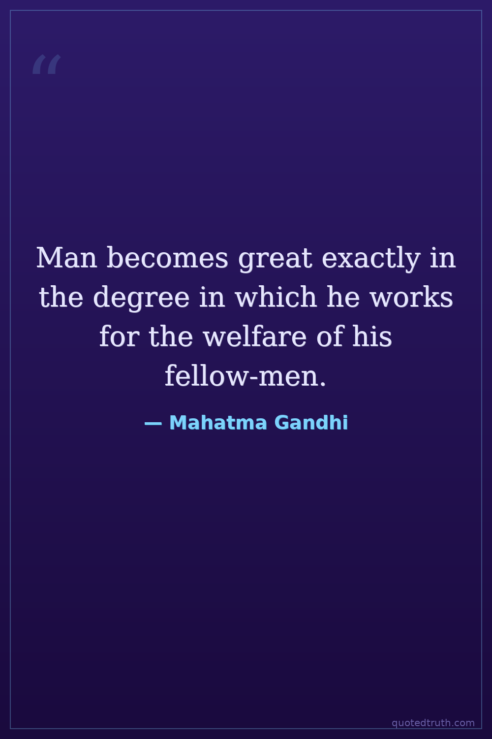 Man becomes great exactly in the degree in which he works for the welfare of his fellow-men.