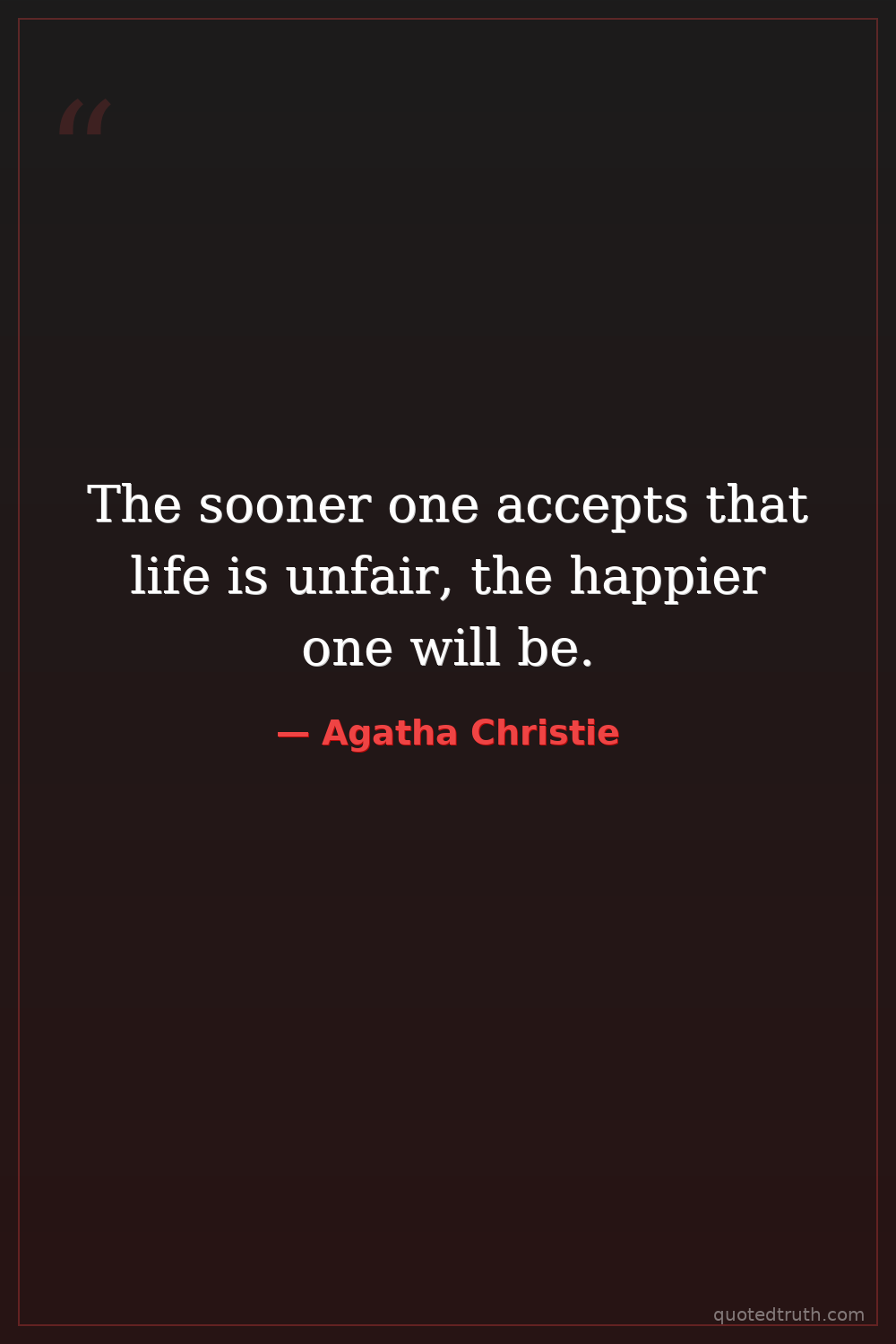 The sooner one accepts that life is unfair, the happier one will be.