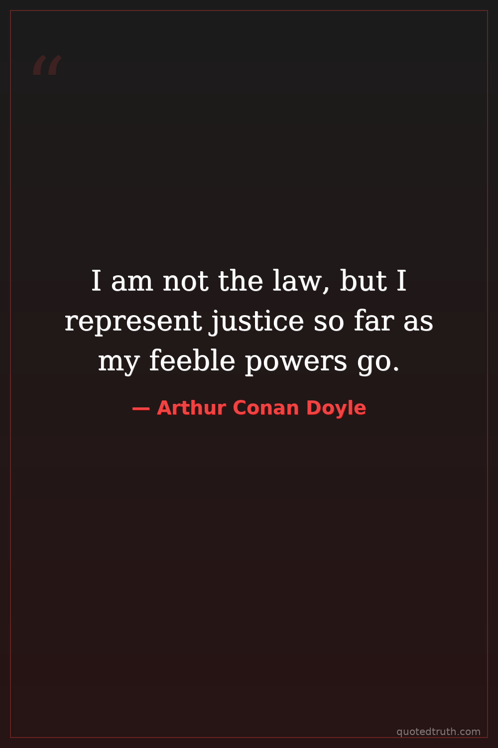 I am not the law, but I represent justice so far as my feeble powers go.