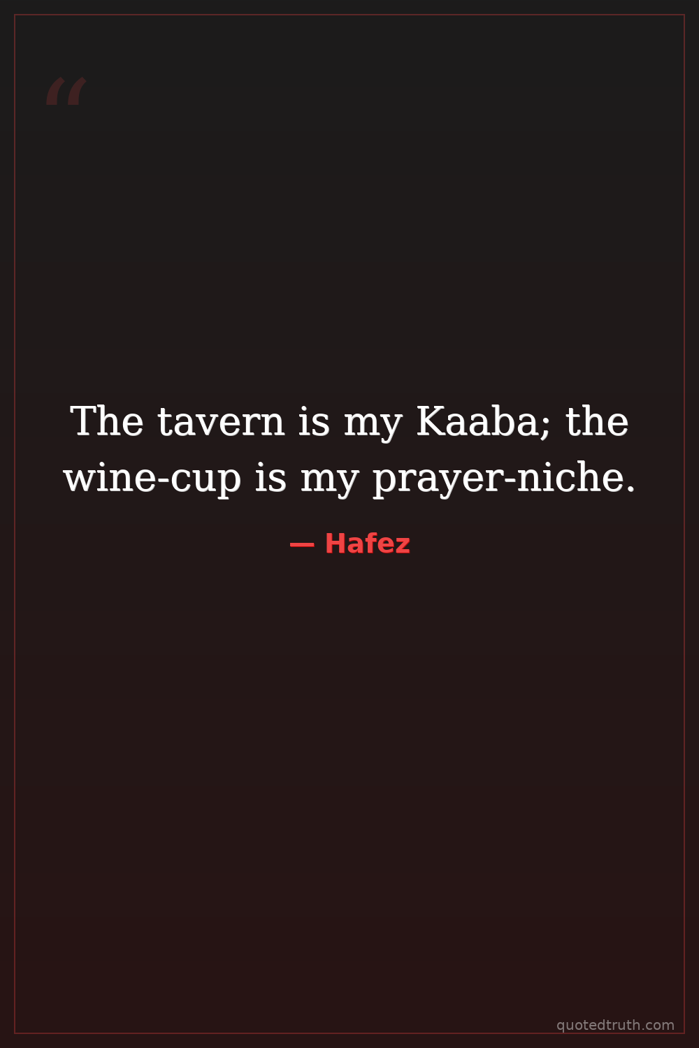 The tavern is my Kaaba; the wine-cup is my prayer-niche.