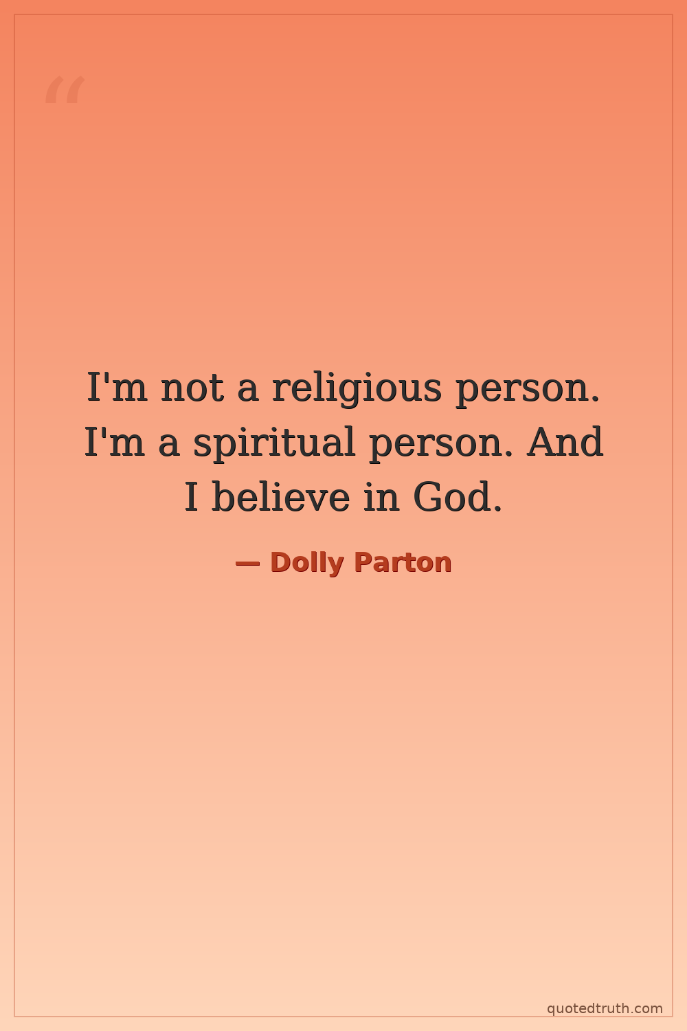 I'm not a religious person. I'm a spiritual person. And I believe in God.