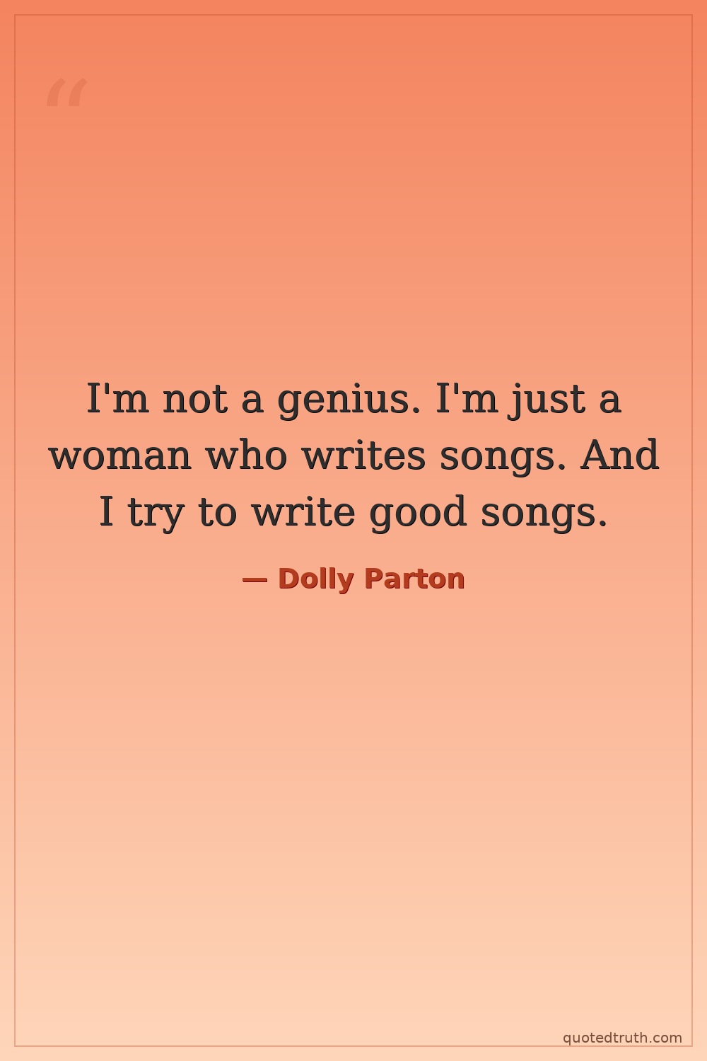 I'm not a genius. I'm just a woman who writes songs. And I try to write good songs.