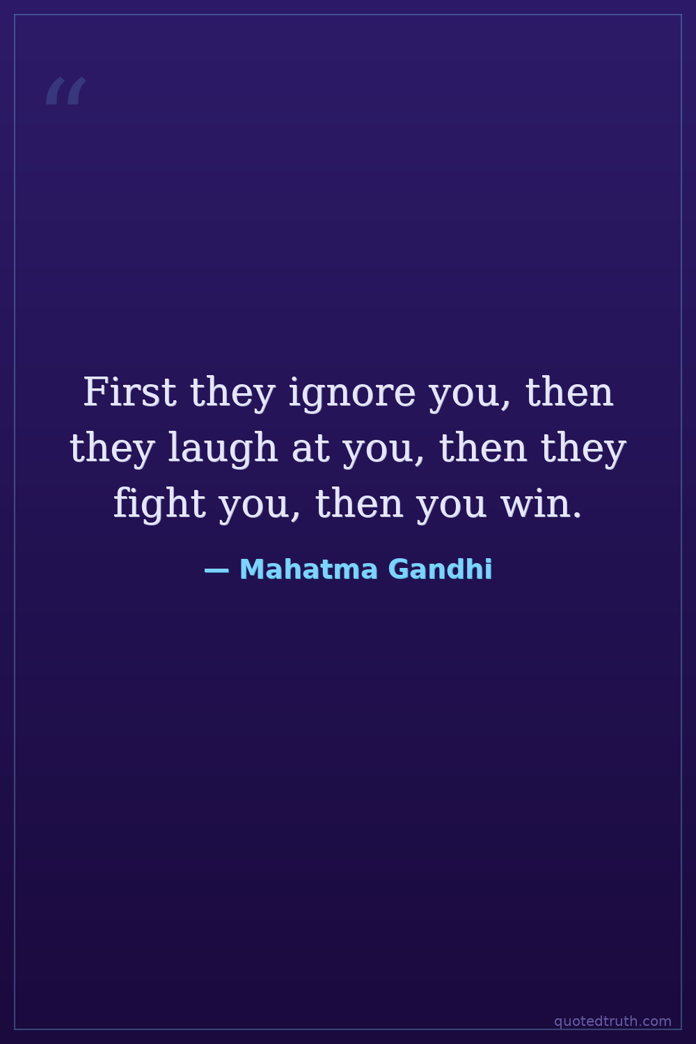 First they ignore you, then they laugh at you, then they fight you, then you win.