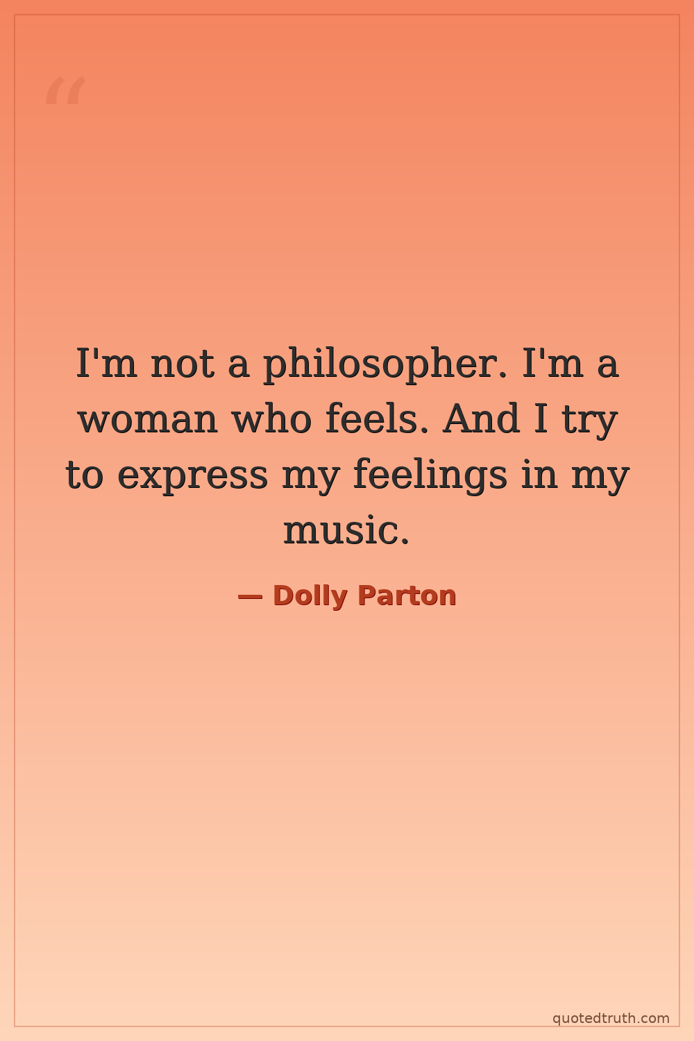I'm not a philosopher. I'm a woman who feels. And I try to express my feelings in my music.