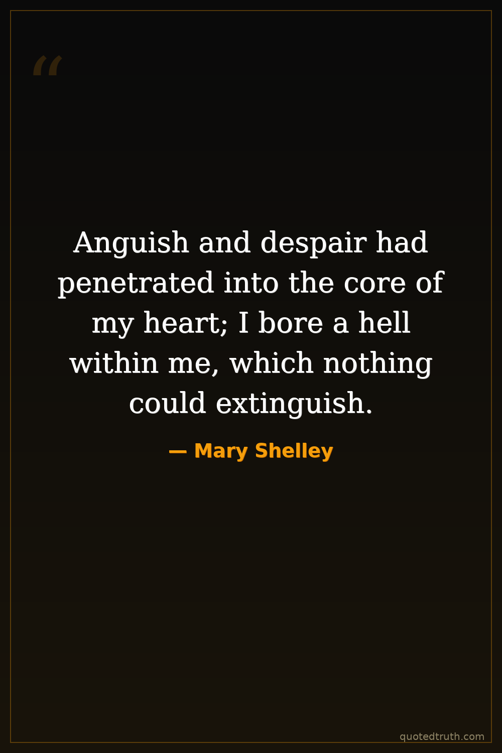 Anguish and despair had penetrated into the core of my heart; I bore a hell within me, which nothing could extinguish.
