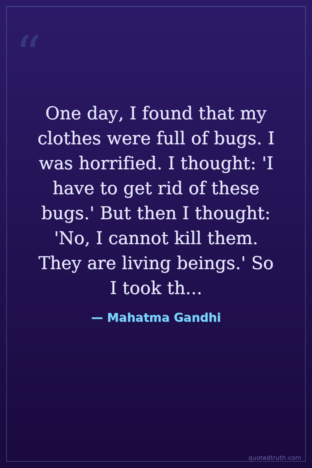 One day, I found that my clothes were full of bugs. I was horrified. I thought: 'I have to get rid of these bugs.' But then I thought: 'No, I cannot kill them. They are living beings.' So I took them off very carefully, one by one, and put them in a bottle.
