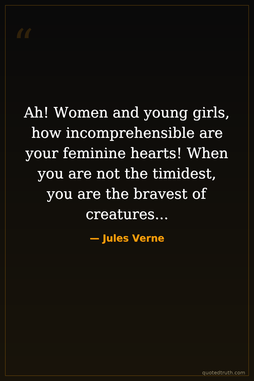 Ah! Women and young girls, how incomprehensible are your feminine hearts! When you are not the timidest, you are the bravest of creatures...
