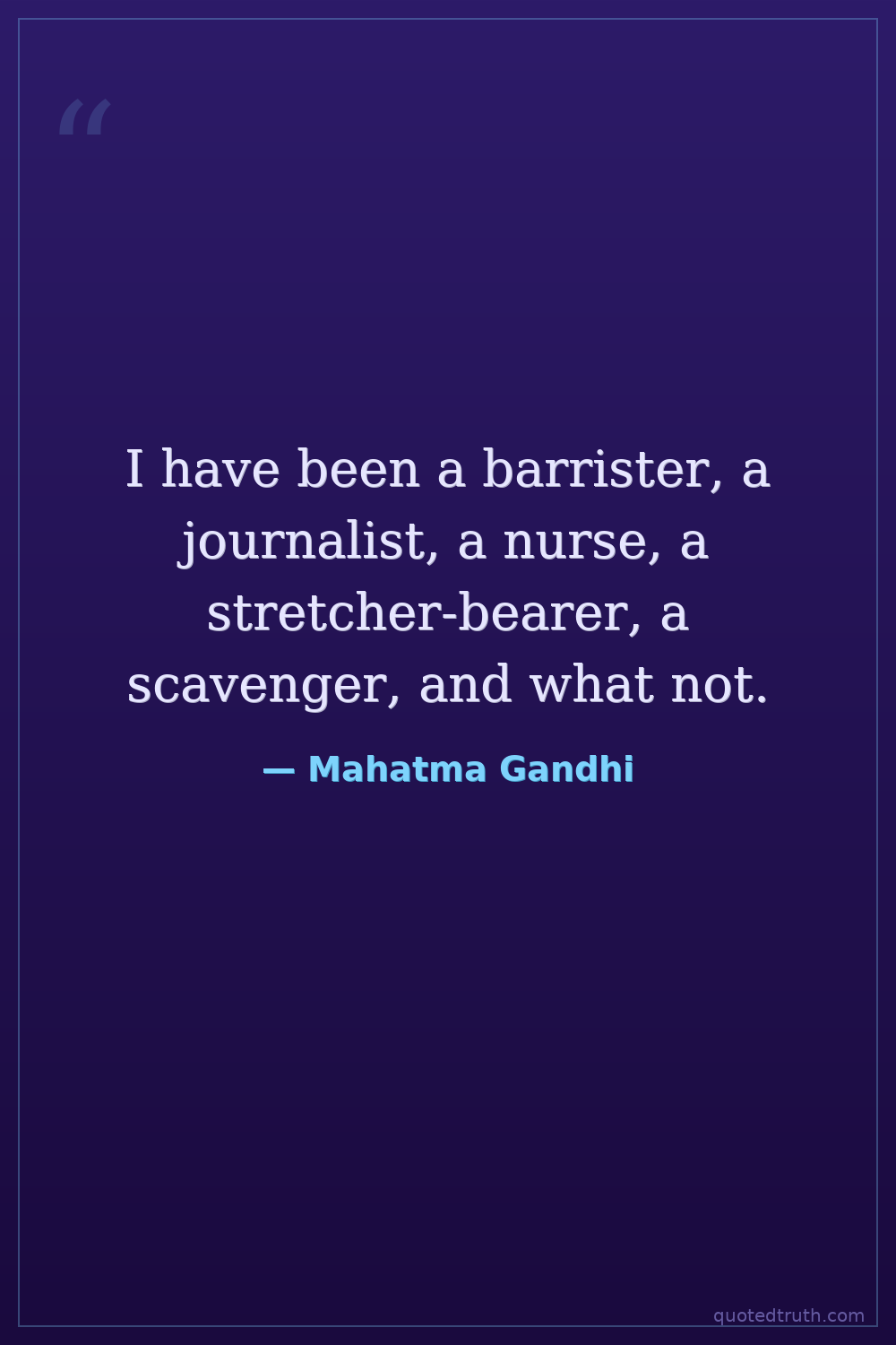 I have been a barrister, a journalist, a nurse, a stretcher-bearer, a scavenger, and what not.