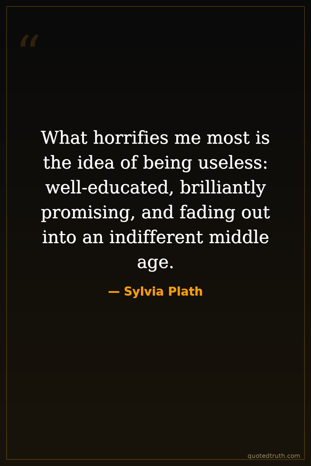 What horrifies me most is the idea of being useless: well-educated, brilliantly promising, and fading out into an indifferent middle age.