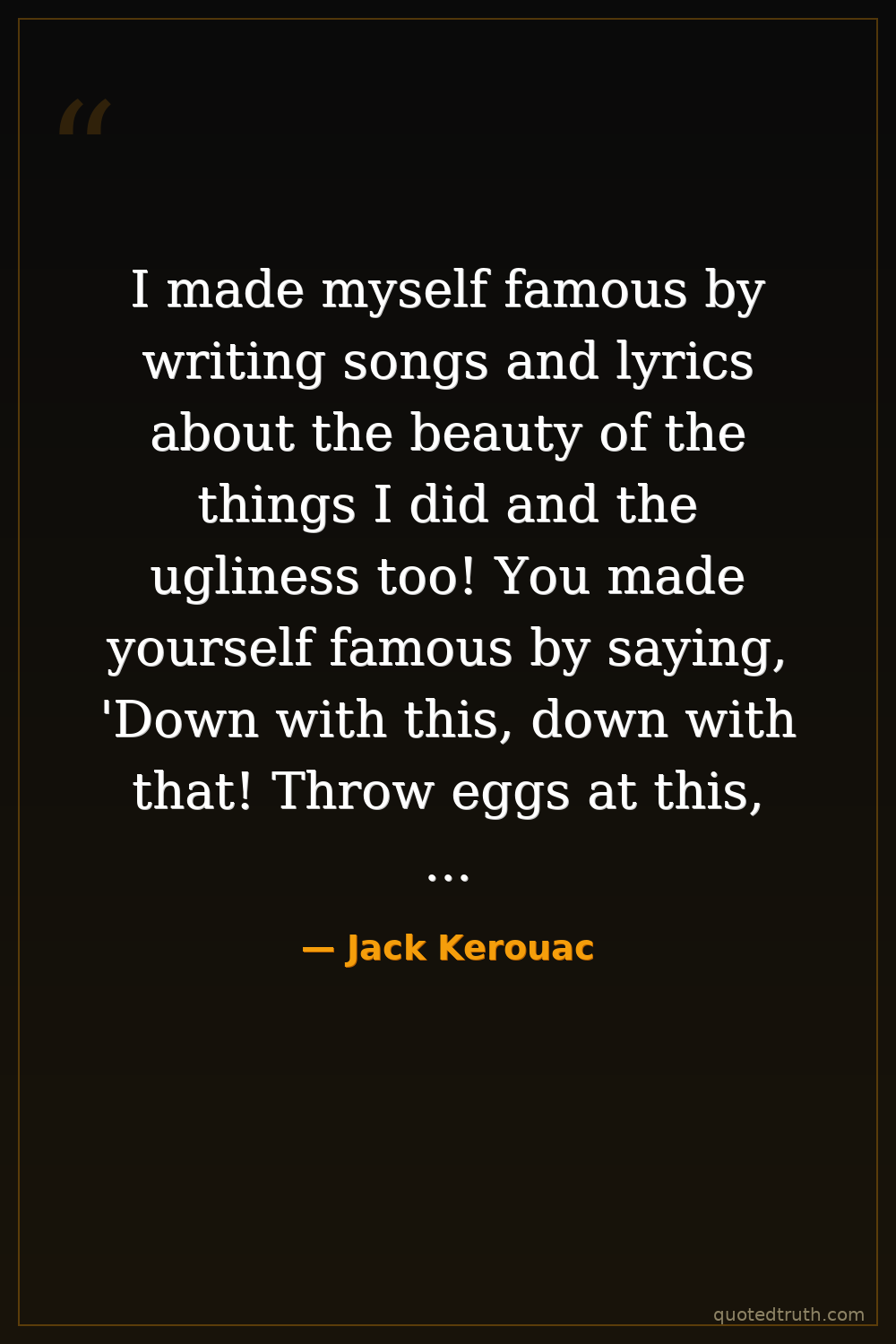 I made myself famous by writing songs and lyrics about the beauty of the things I did and the ugliness too! You made yourself famous by saying, 'Down with this, down with that! Throw eggs at this, throw eggs at that!'