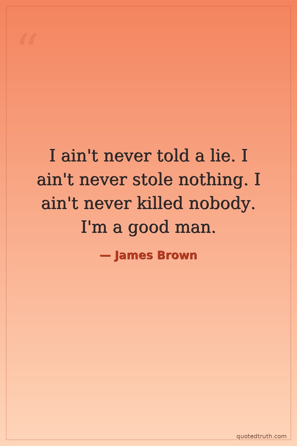 I ain't never told a lie. I ain't never stole nothing. I ain't never killed nobody. I'm a good man.