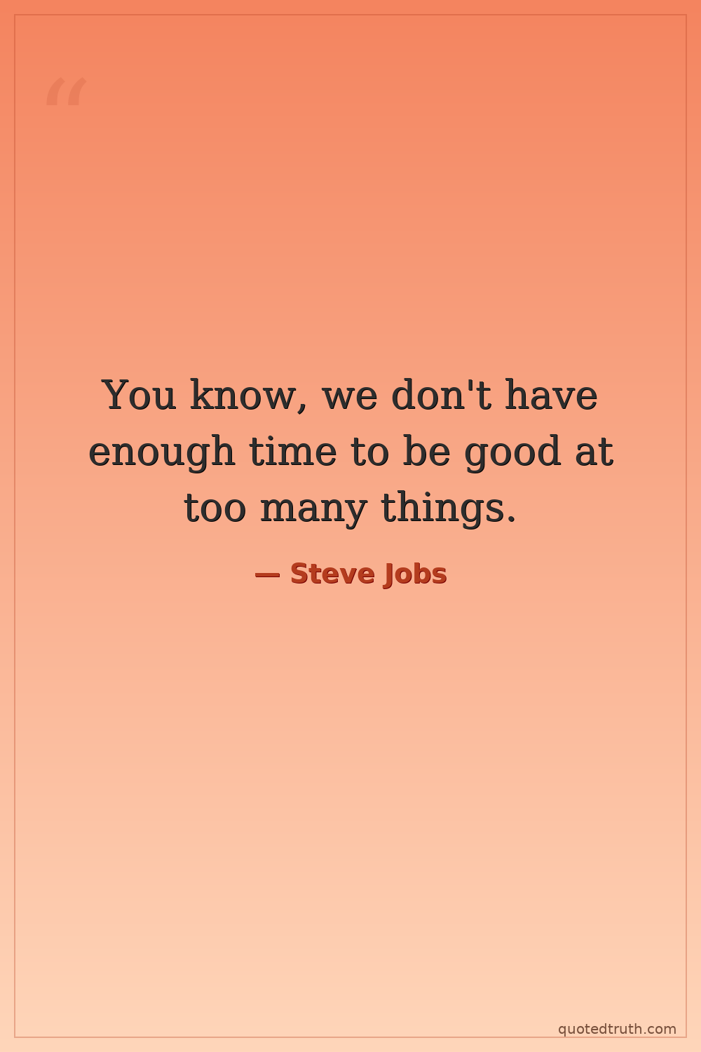 You know, we don't have enough time to be good at too many things.
