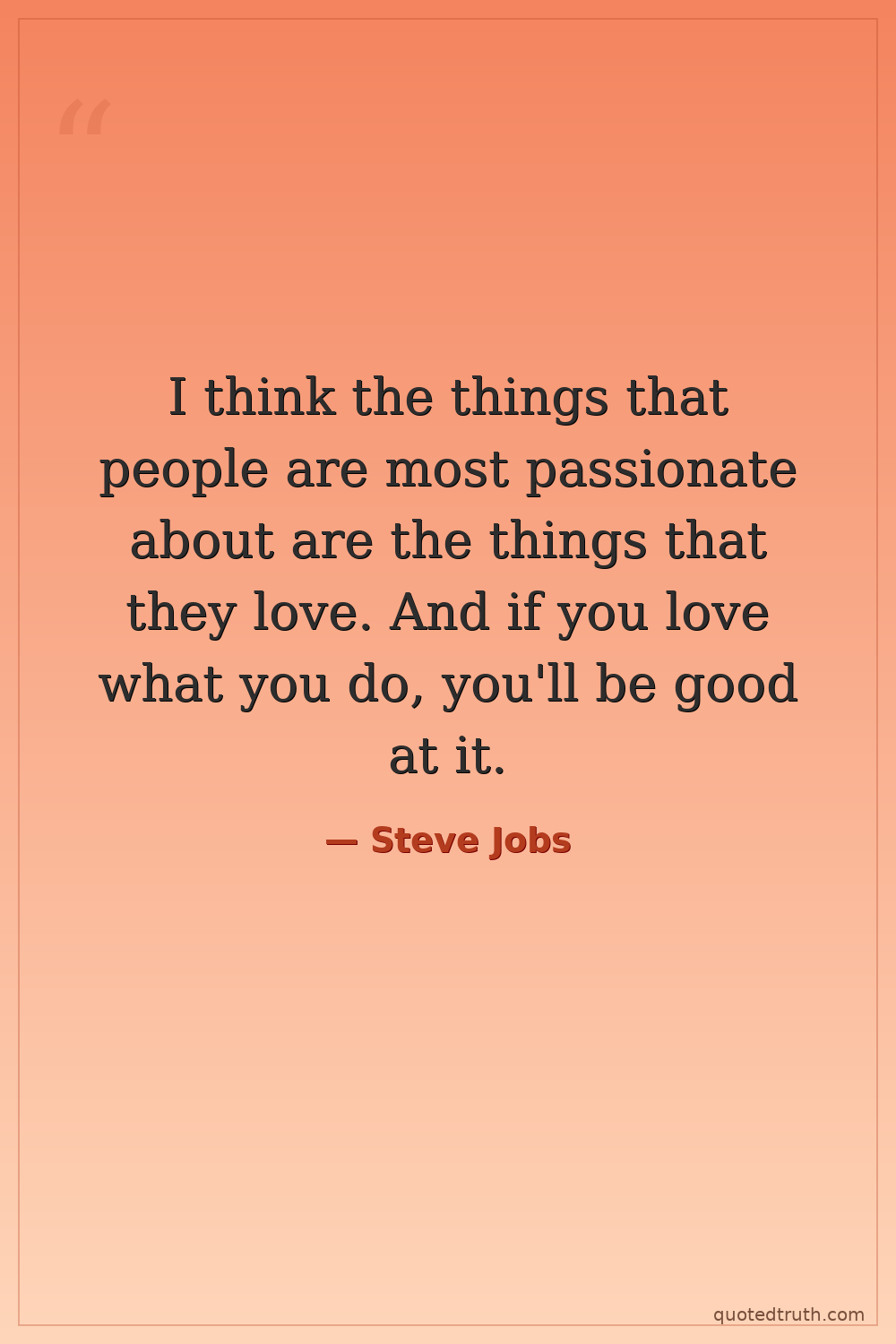 I think the things that people are most passionate about are the things that they love. And if you love what you do, you'll be good at it.