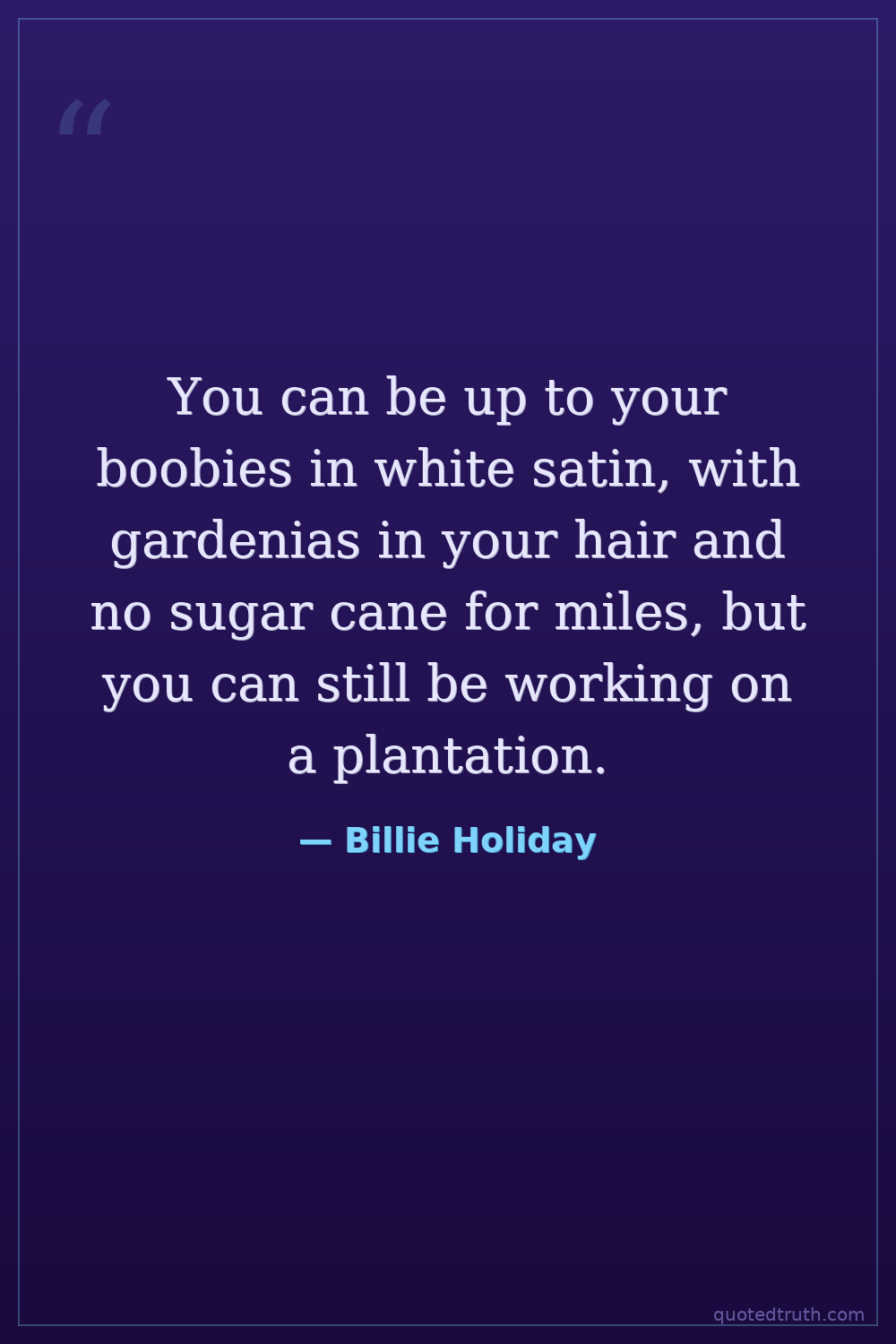 You can be up to your boobies in white satin, with gardenias in your hair and no sugar cane for miles, but you can still be working on a plantation.
