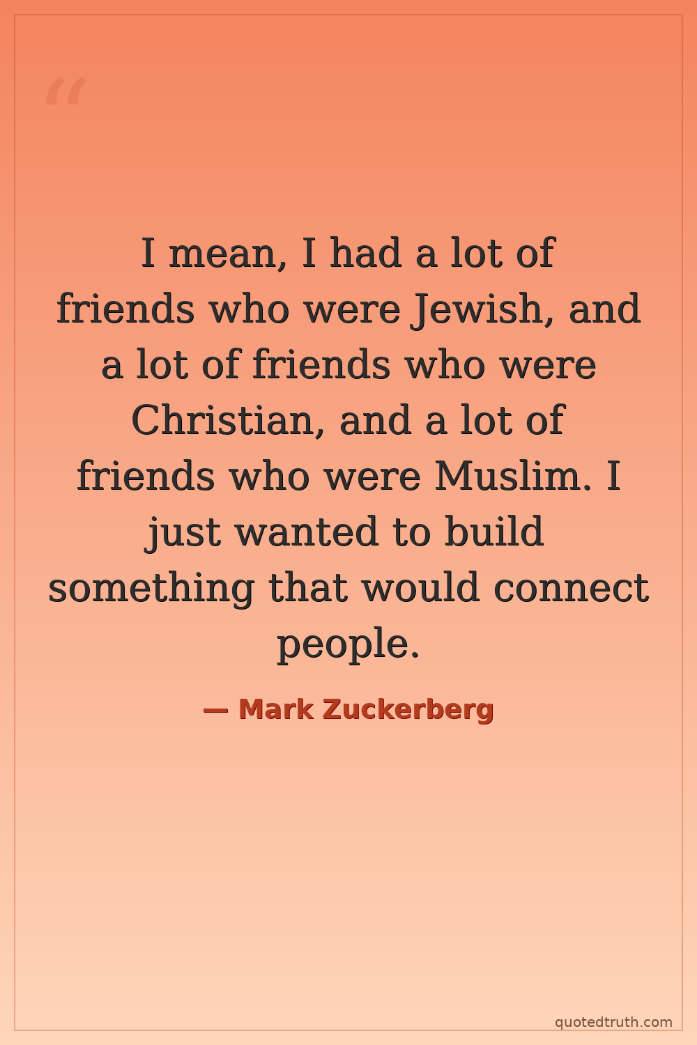 I mean, I had a lot of friends who were Jewish, and a lot of friends who were Christian, and a lot of friends who were Muslim. I just wanted to build something that would connect people.