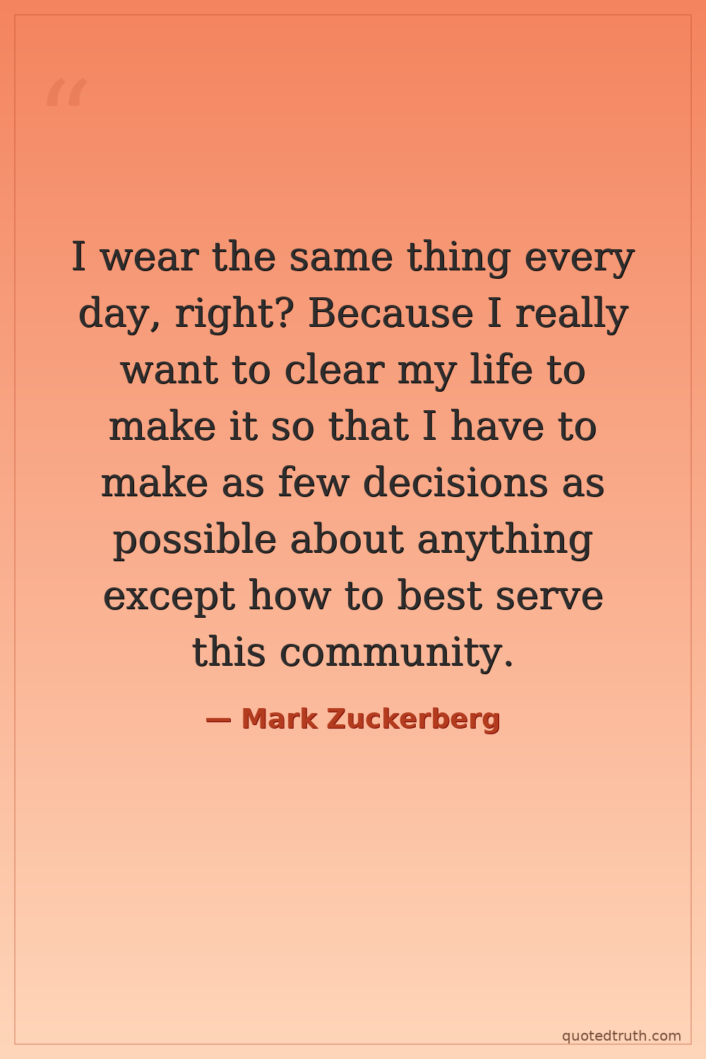 I wear the same thing every day, right? Because I really want to clear my life to make it so that I have to make as few decisions as possible about anything except how to best serve this community.