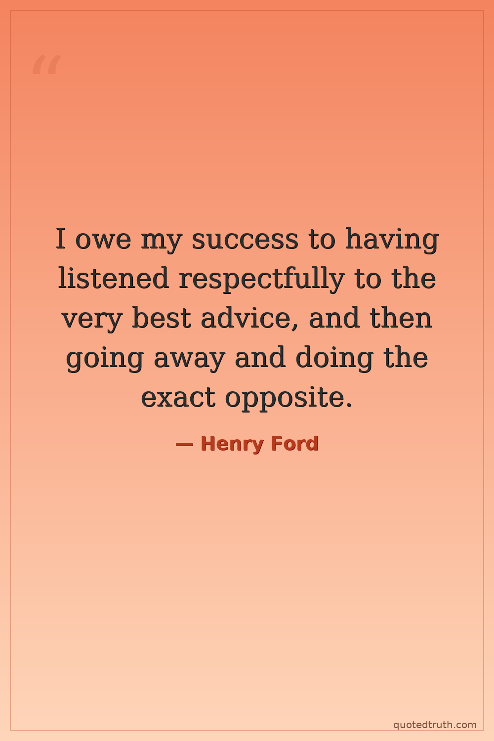 I owe my success to having listened respectfully to the very best advice, and then going away and doing the exact opposite.