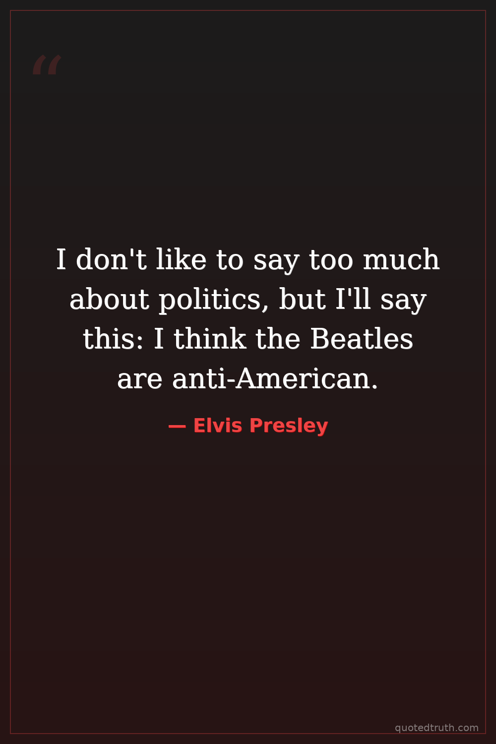 I don't like to say too much about politics, but I'll say this: I think the Beatles are anti-American.