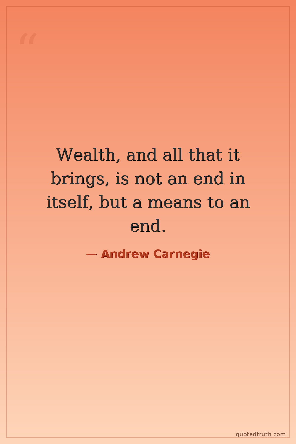 Wealth, and all that it brings, is not an end in itself, but a means to an end.