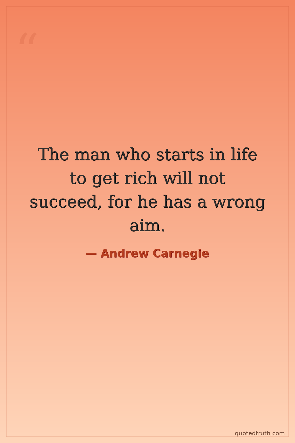 The man who starts in life to get rich will not succeed, for he has a wrong aim.