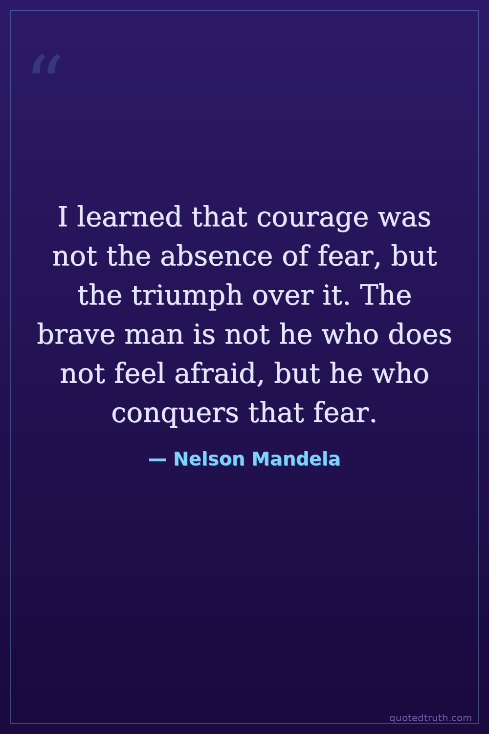 I learned that courage was not the absence of fear, but the triumph over it. The brave man is not he who does not feel afraid, but he who conquers that fear.
