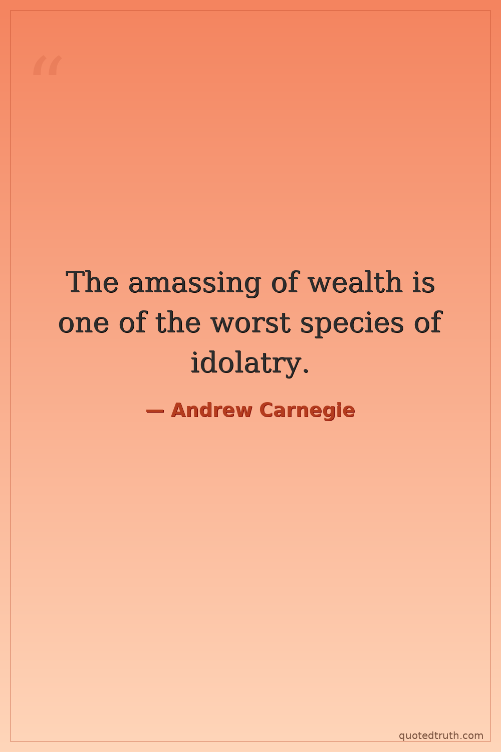 The amassing of wealth is one of the worst species of idolatry.