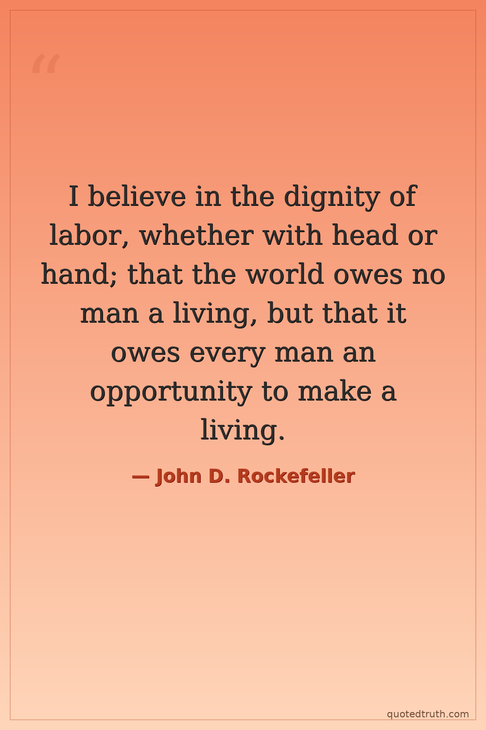 I believe in the dignity of labor, whether with head or hand; that the world owes no man a living, but that it owes every man an opportunity to make a living.