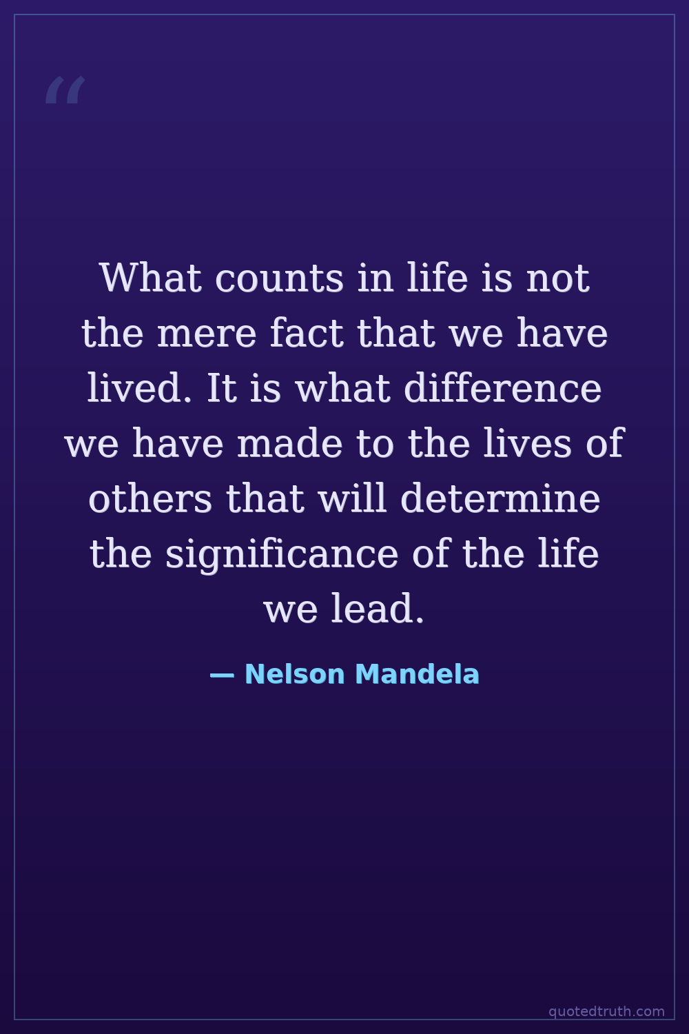 What counts in life is not the mere fact that we have lived. It is what difference we have made to the lives of others that will determine the significance of the life we lead.