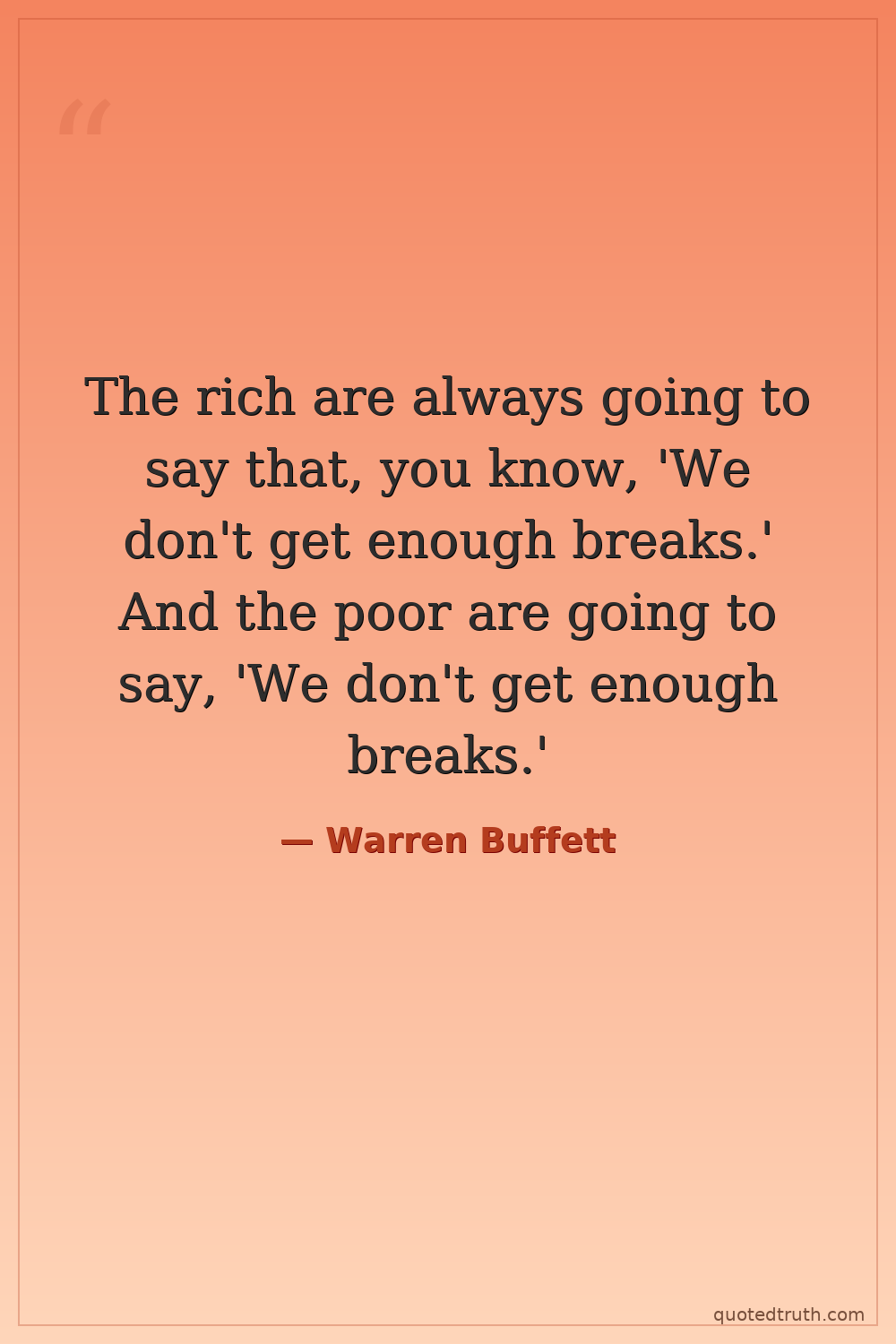 The rich are always going to say that, you know, 'We don't get enough breaks.' And the poor are going to say, 'We don't get enough breaks.'