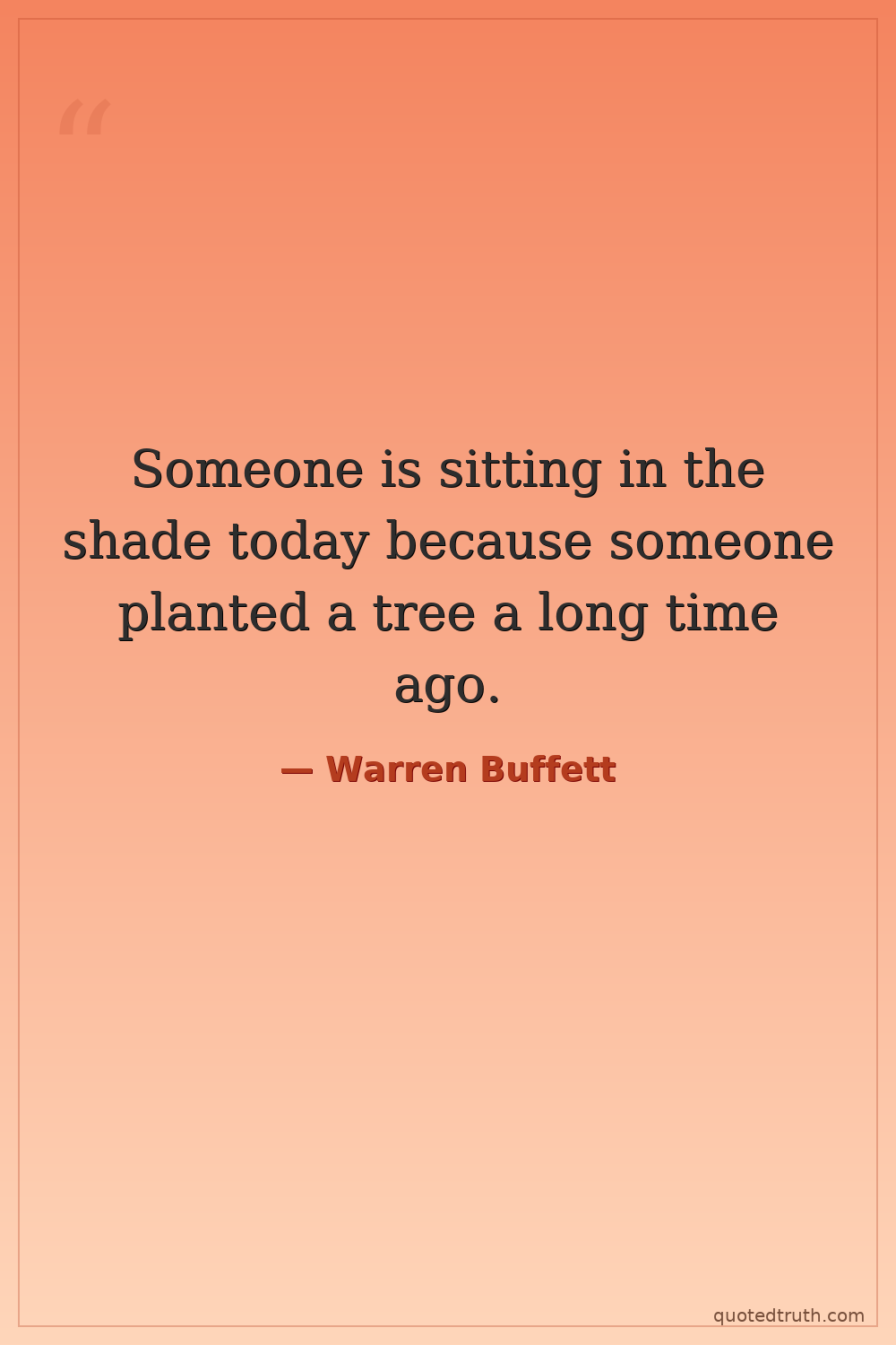 Someone is sitting in the shade today because someone planted a tree a long time ago.