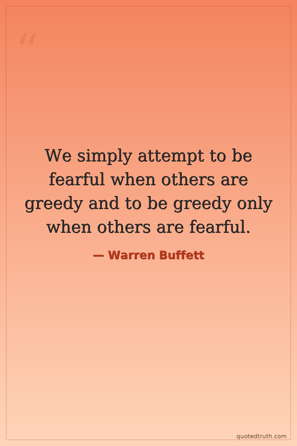 We simply attempt to be fearful when others are greedy and to be greedy only when others are fearful.