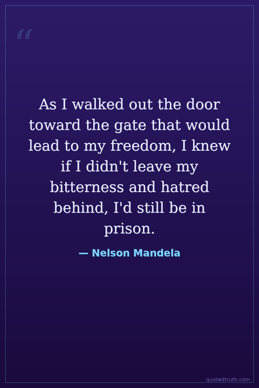 As I walked out the door toward the gate that would lead to my freedom, I knew if I didn't leave my bitterness and hatred behind, I'd still be in prison.