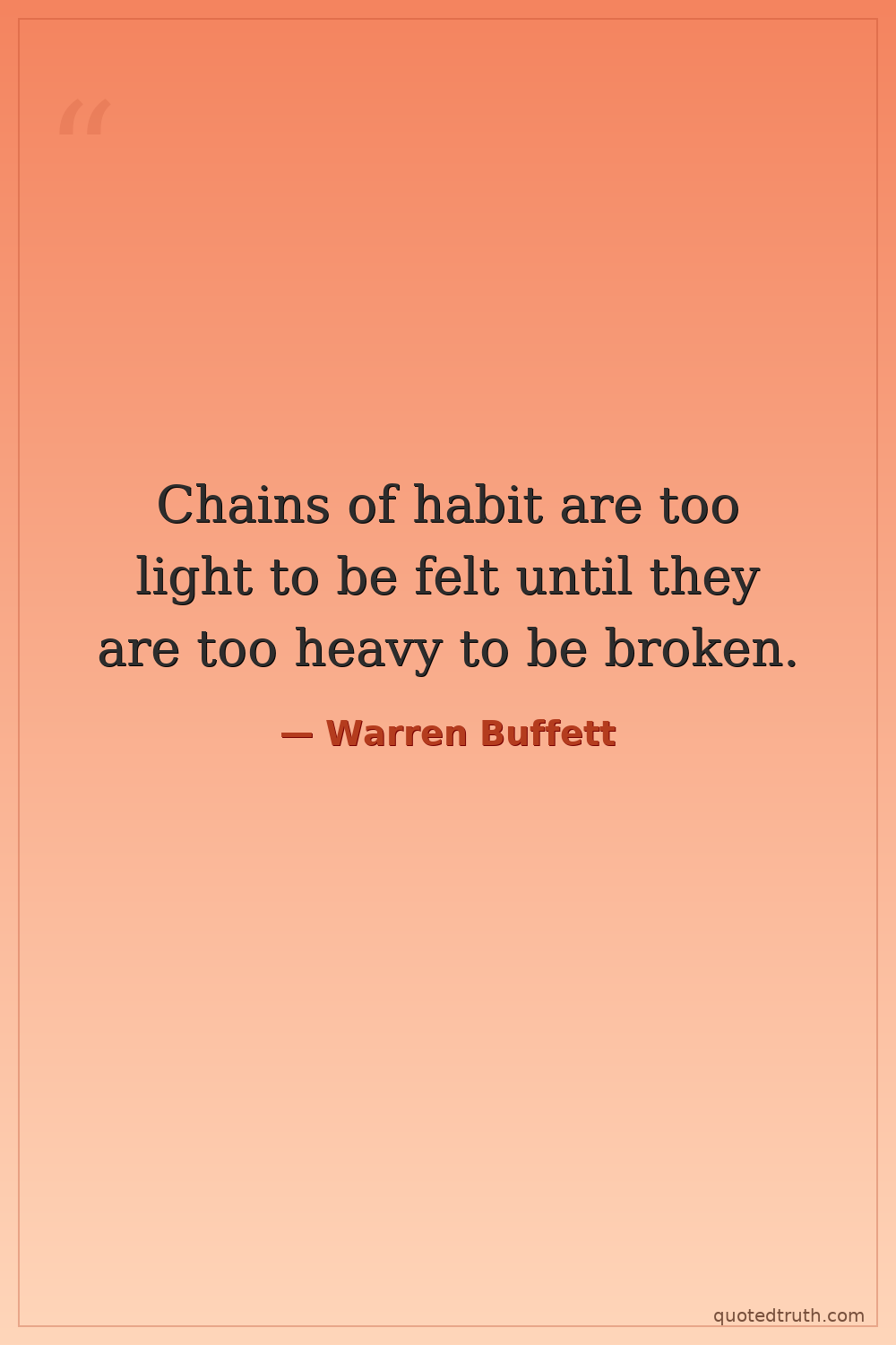 Chains of habit are too light to be felt until they are too heavy to be broken.
