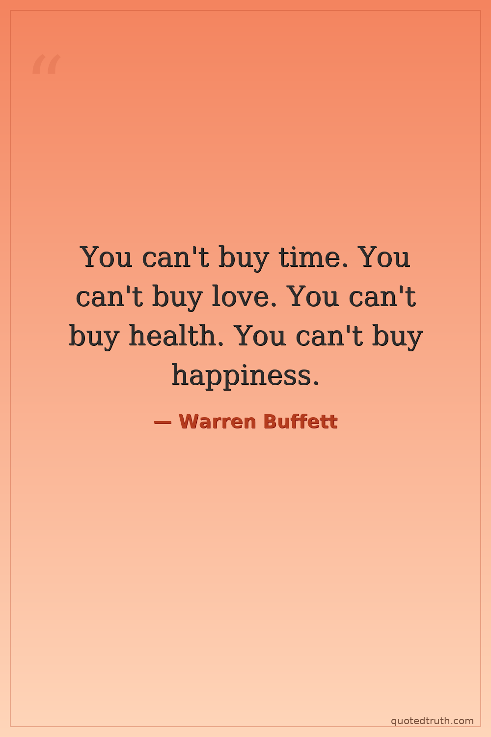 You can't buy time. You can't buy love. You can't buy health. You can't buy happiness.