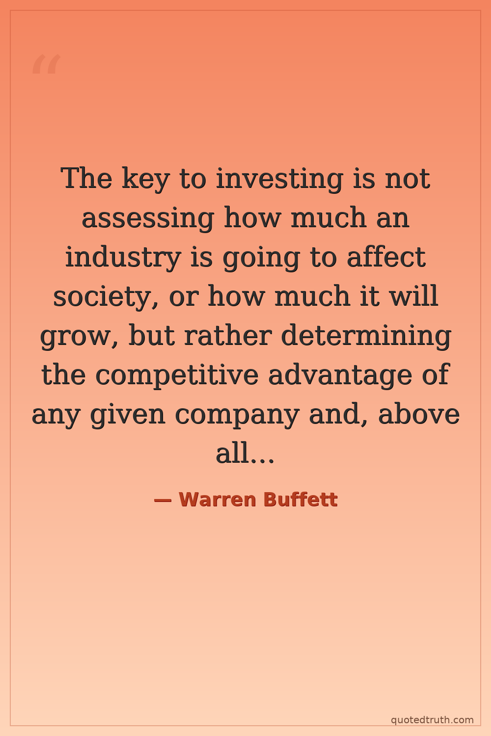 The key to investing is not assessing how much an industry is going to affect society, or how much it will grow, but rather determining the competitive advantage of any given company and, above all, the durability of that advantage.