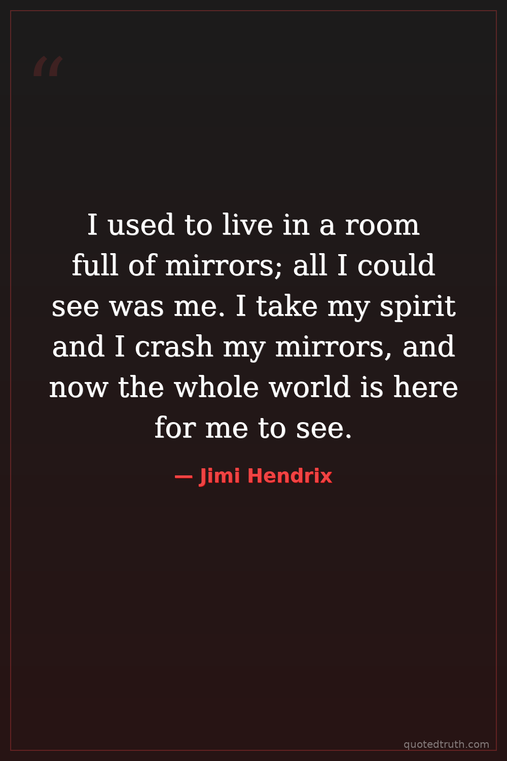 I used to live in a room full of mirrors; all I could see was me. I take my spirit and I crash my mirrors, and now the whole world is here for me to see.