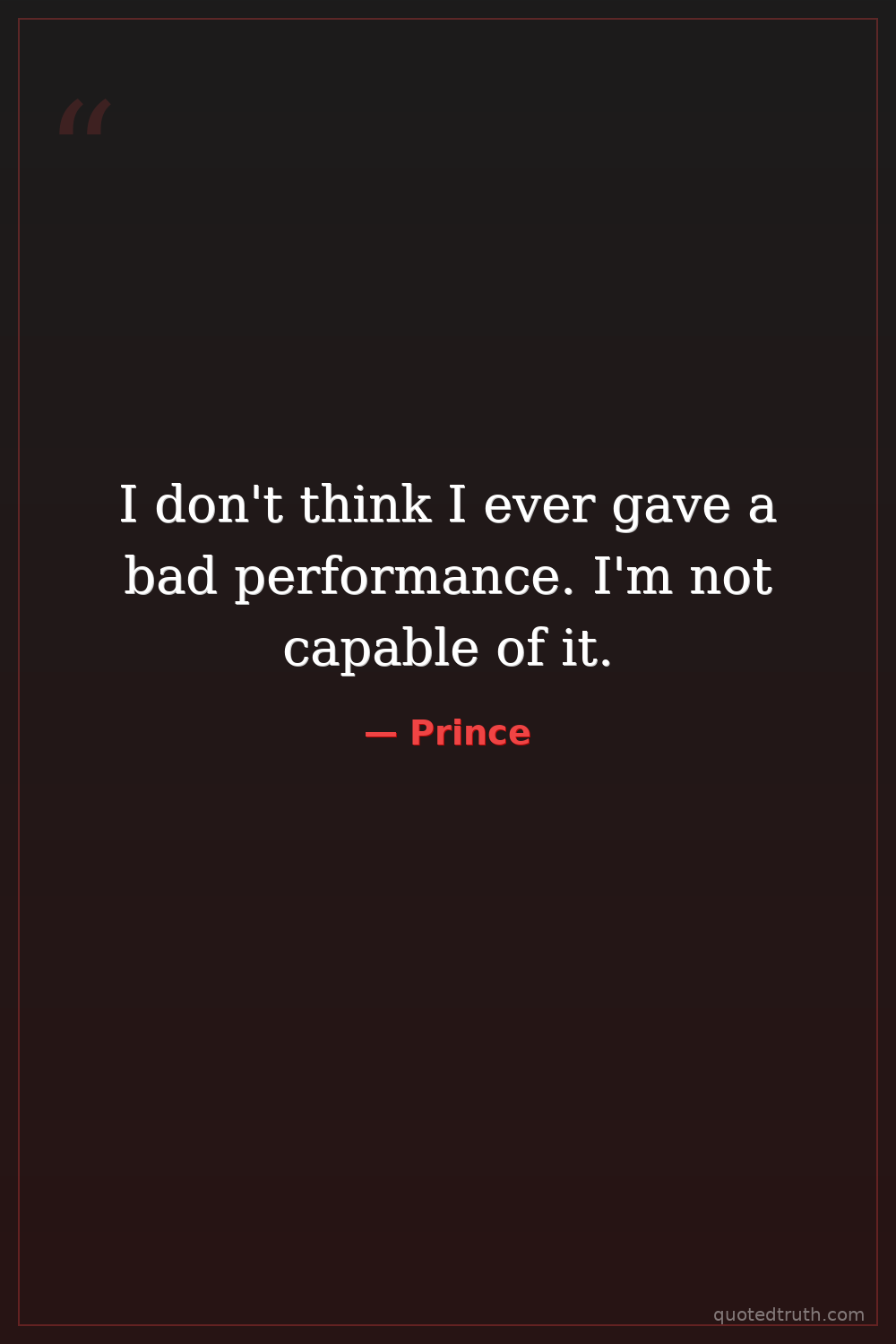 I don't think I ever gave a bad performance. I'm not capable of it.