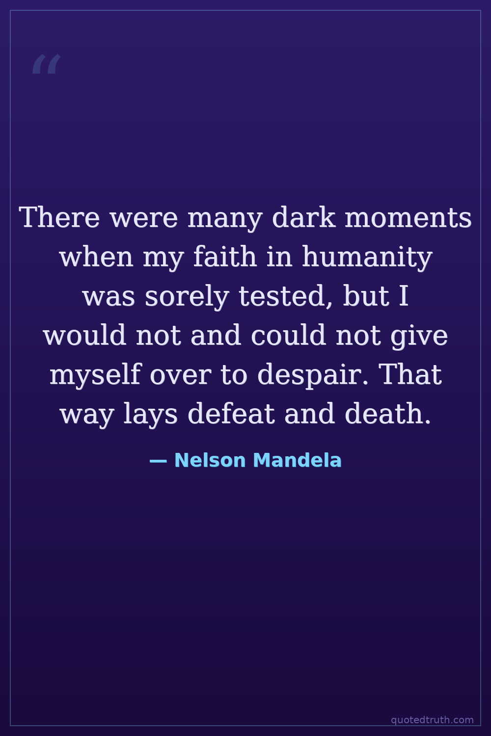 There were many dark moments when my faith in humanity was sorely tested, but I would not and could not give myself over to despair. That way lays defeat and death.