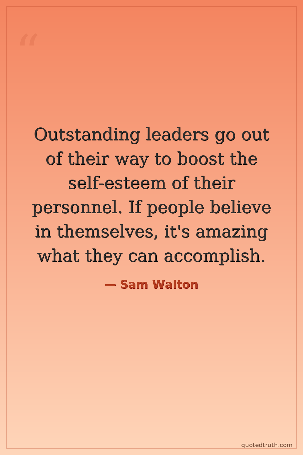 Outstanding leaders go out of their way to boost the self-esteem of their personnel. If people believe in themselves, it's amazing what they can accomplish.