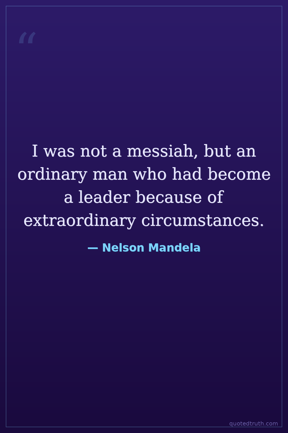 I was not a messiah, but an ordinary man who had become a leader because of extraordinary circumstances.
