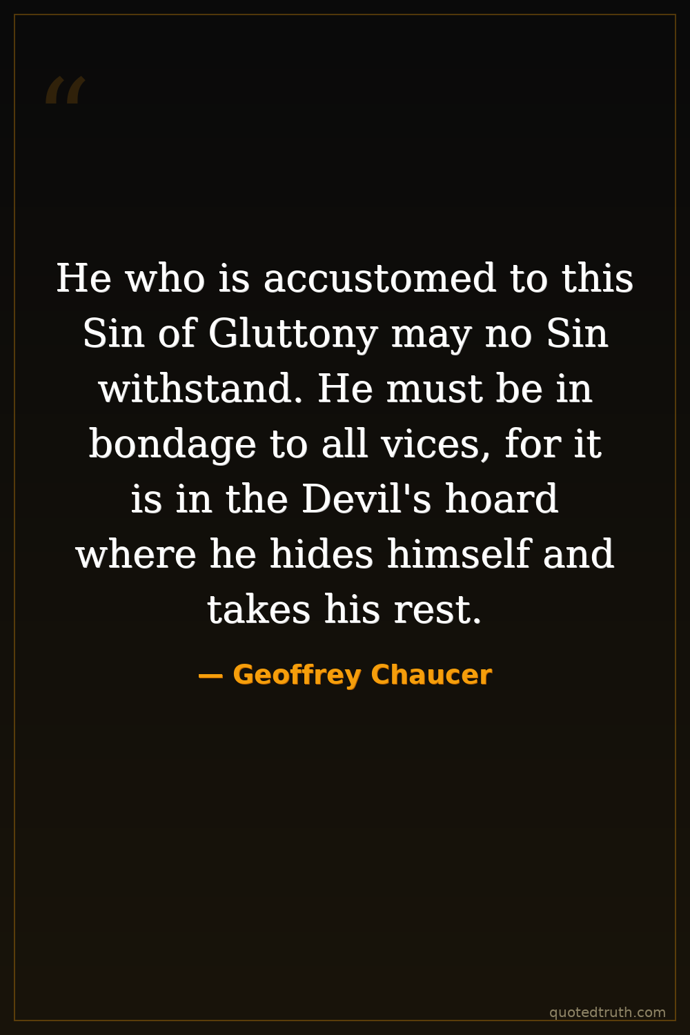 He who is accustomed to this Sin of Gluttony may no Sin withstand. He must be in bondage to all vices, for it is in the Devil's hoard where he hides himself and takes his rest.
