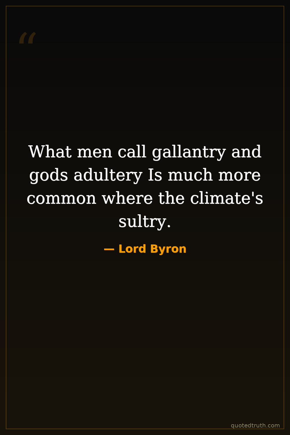 What men call gallantry and gods adultery Is much more common where the climate's sultry.