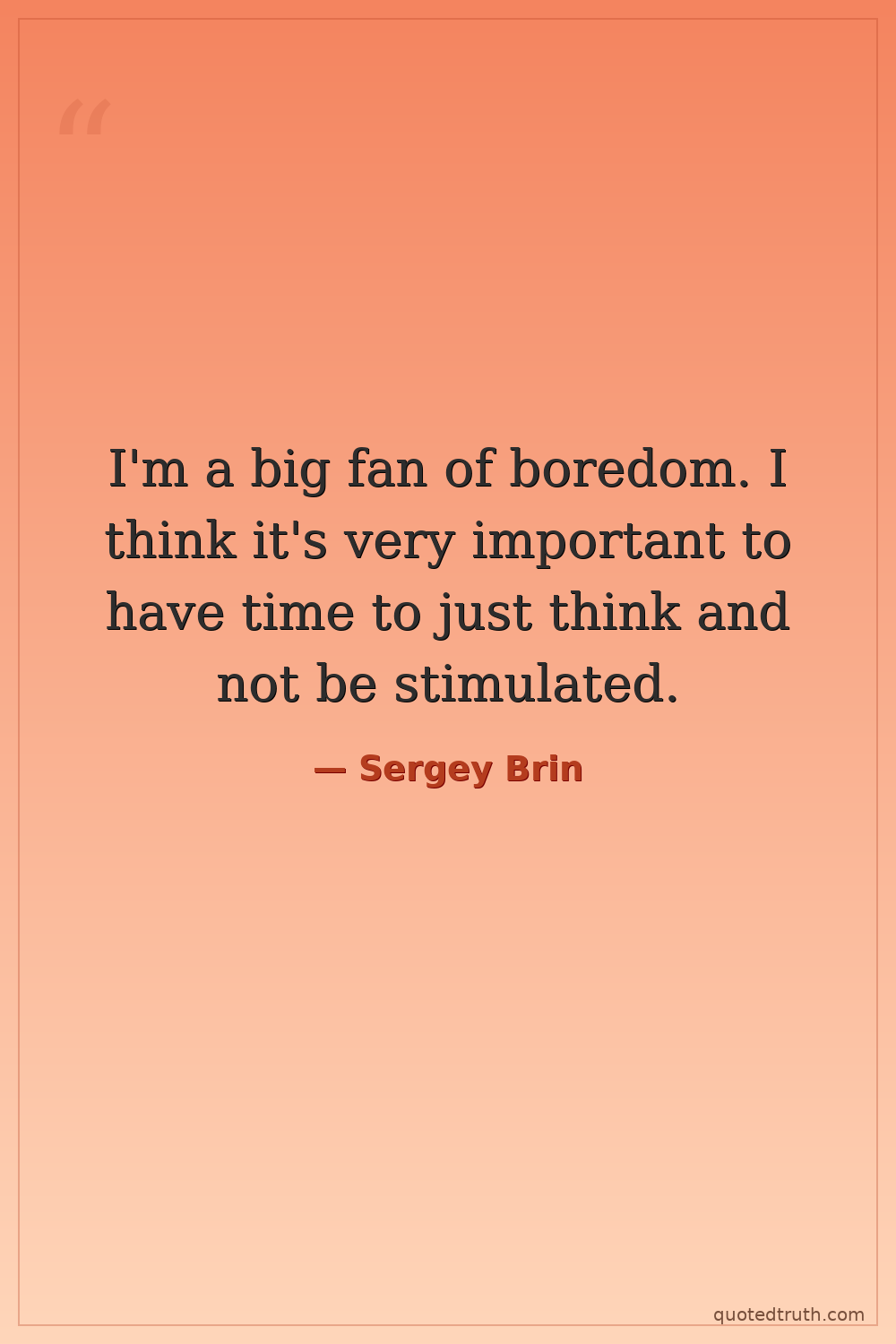 I'm a big fan of boredom. I think it's very important to have time to just think and not be stimulated.