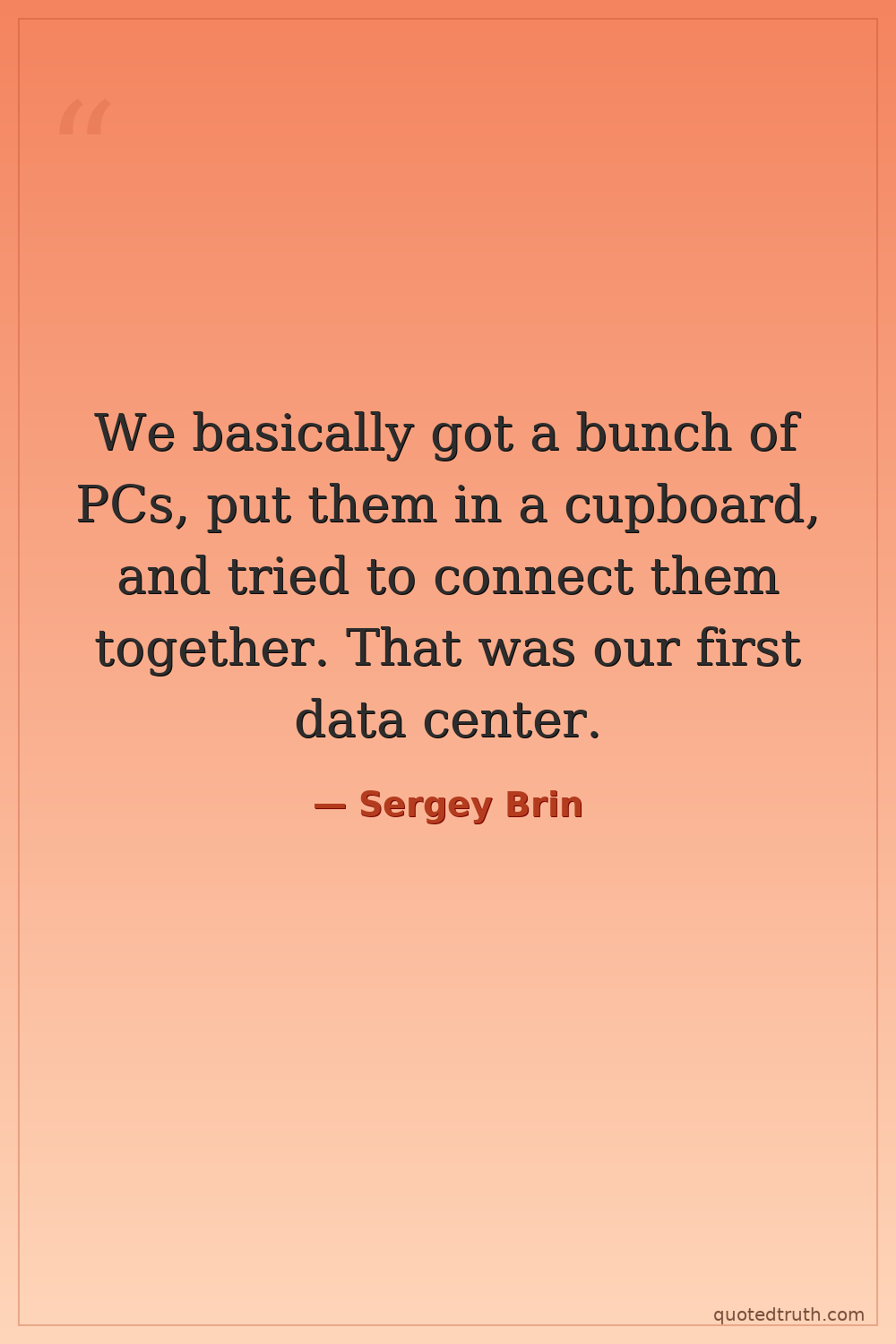 We basically got a bunch of PCs, put them in a cupboard, and tried to connect them together. That was our first data center.