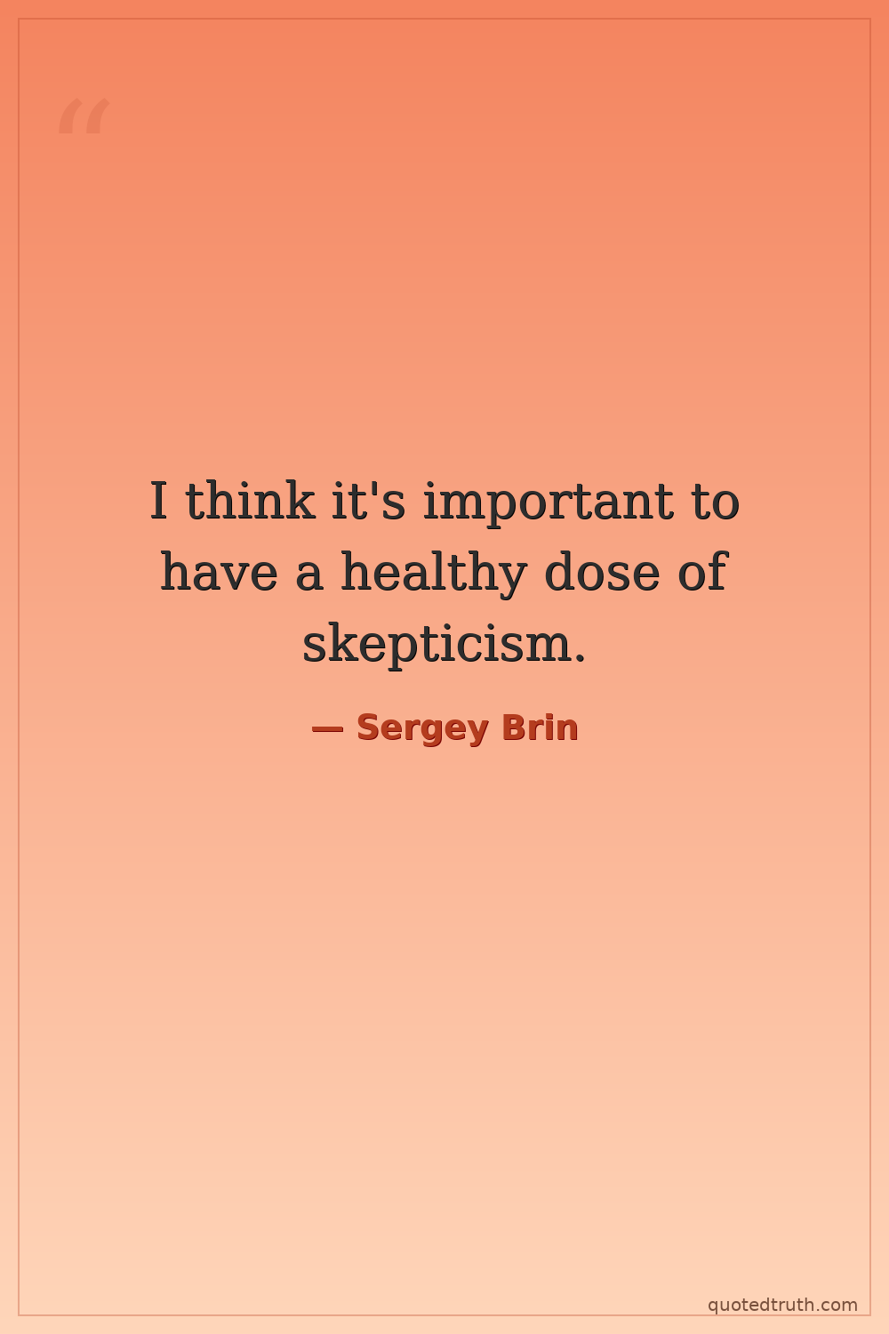I think it's important to have a healthy dose of skepticism.