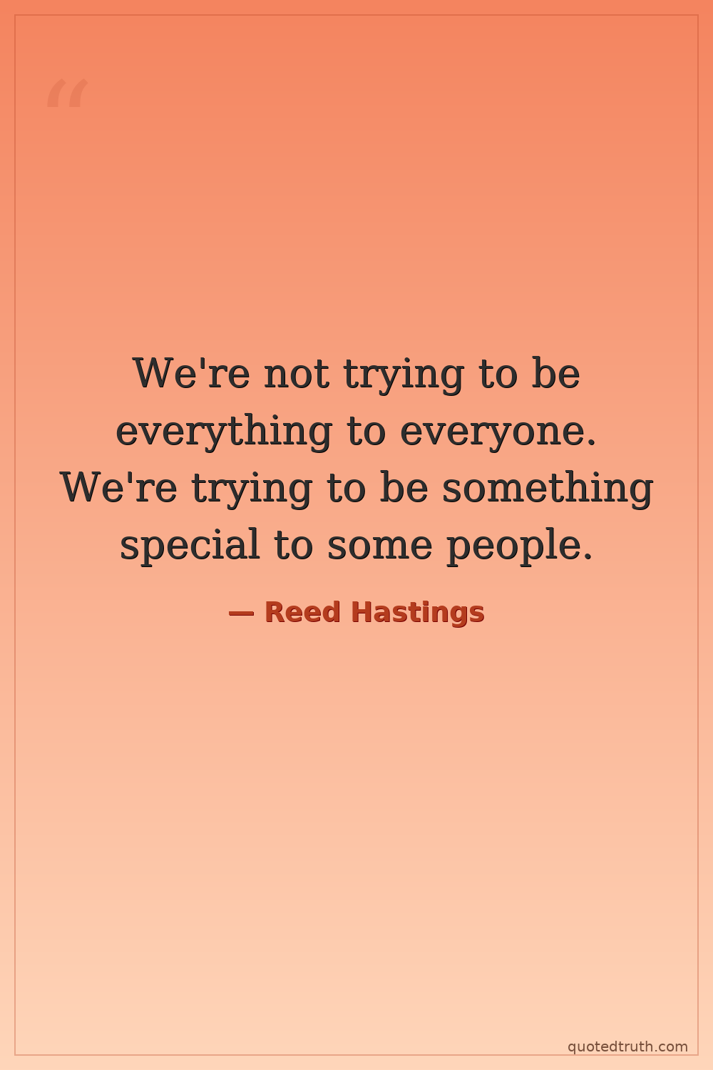 We're not trying to be everything to everyone. We're trying to be something special to some people.