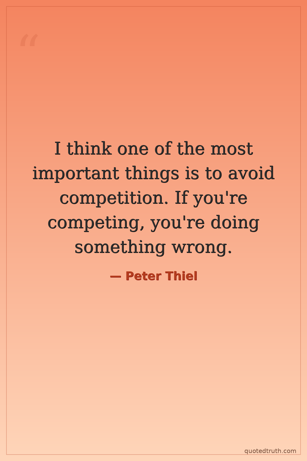 I think one of the most important things is to avoid competition. If you're competing, you're doing something wrong.